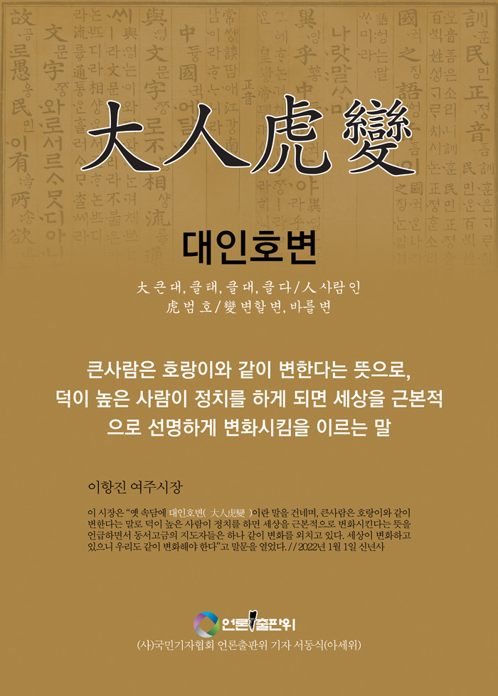 대인호변을 현대적으로 해석하면 "진정한 리더는 호랑이의 털갈이처럼 자연스럽고 확실하게 조직을 변화시킨다"는 의미입니다.