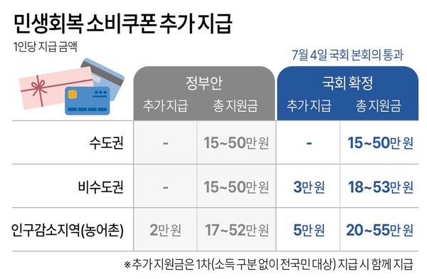 소비쿠폰 지급액: 소득과 지역에 따라 차등 지급