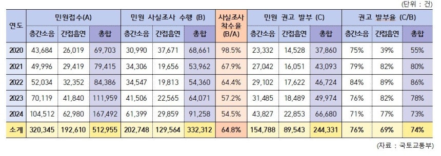 📊 층간 흡연 민원, 4년 새 2배 이상 폭증